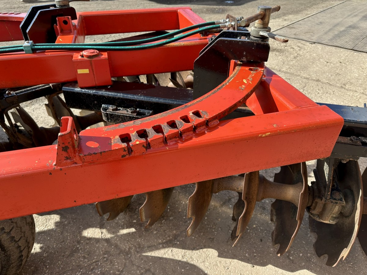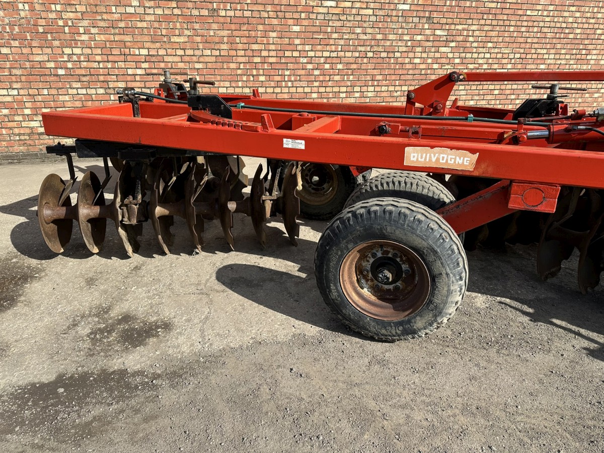 Quivogne APXE TL Disc Printer-friendly versionQuivogne APXE-TL Disc X Pattern disc harrow 3.2 mtr width Rear drawbar and hydraulics Cutaway discs on front and rear Fitted with side deflectors Mechanical disc gang angle adjustment Good condition