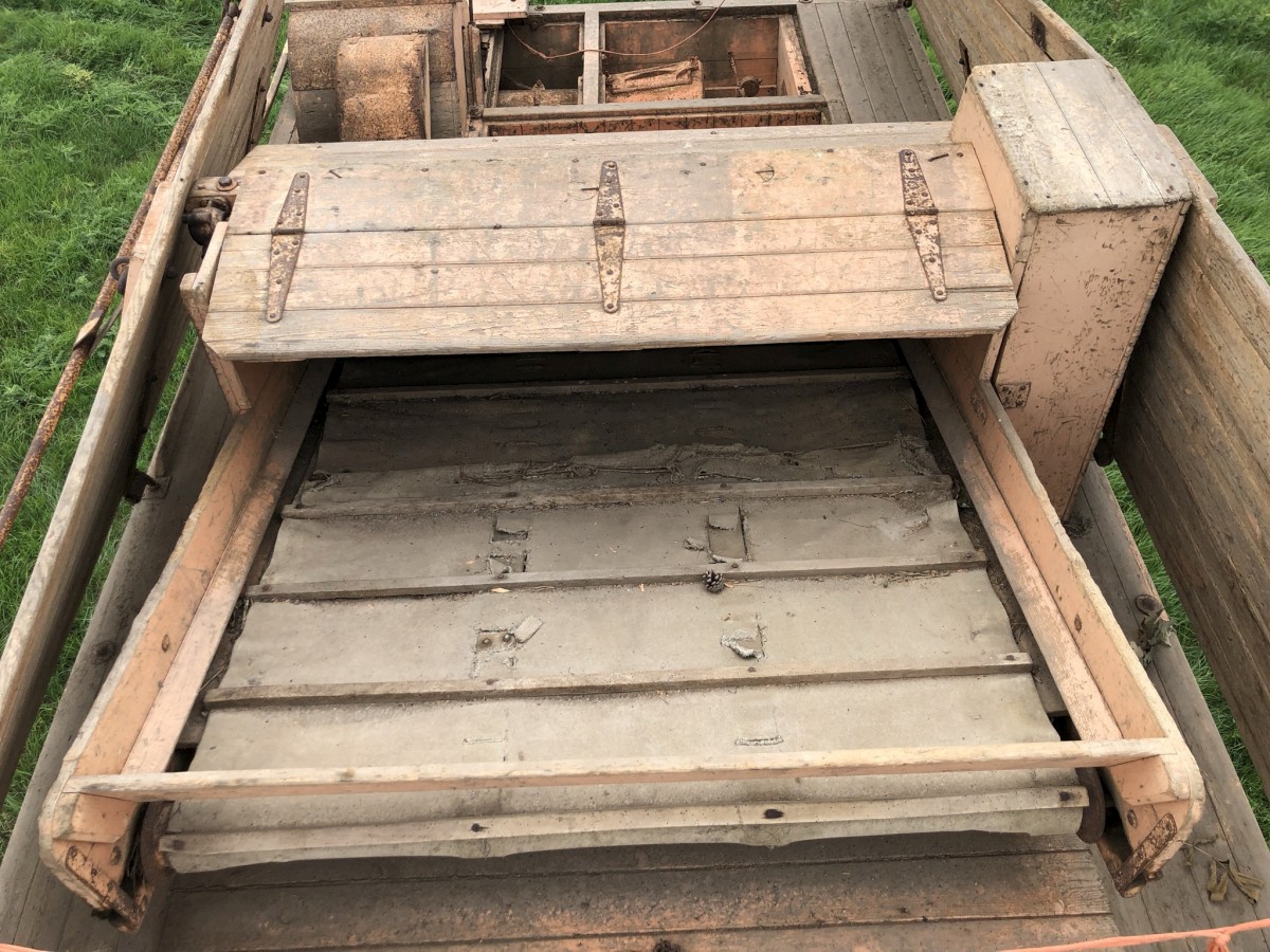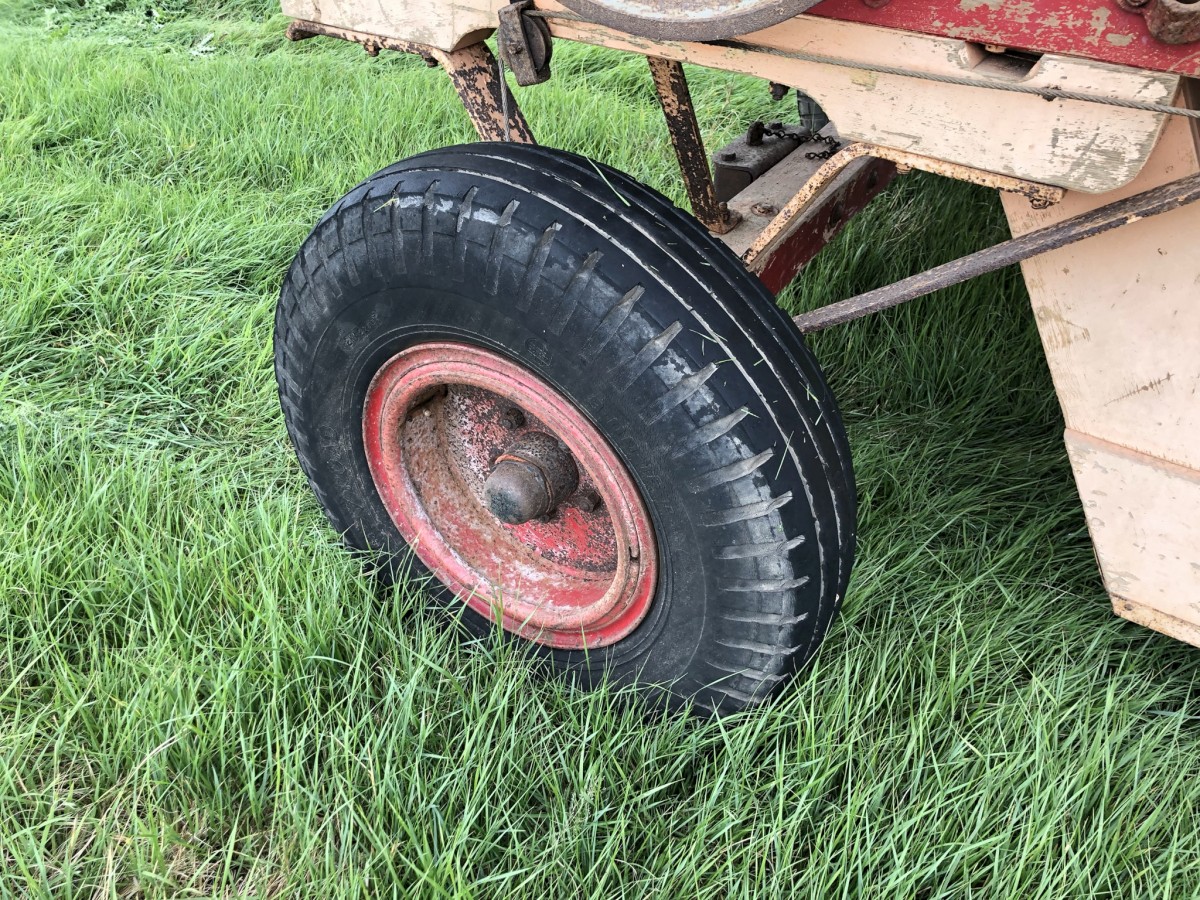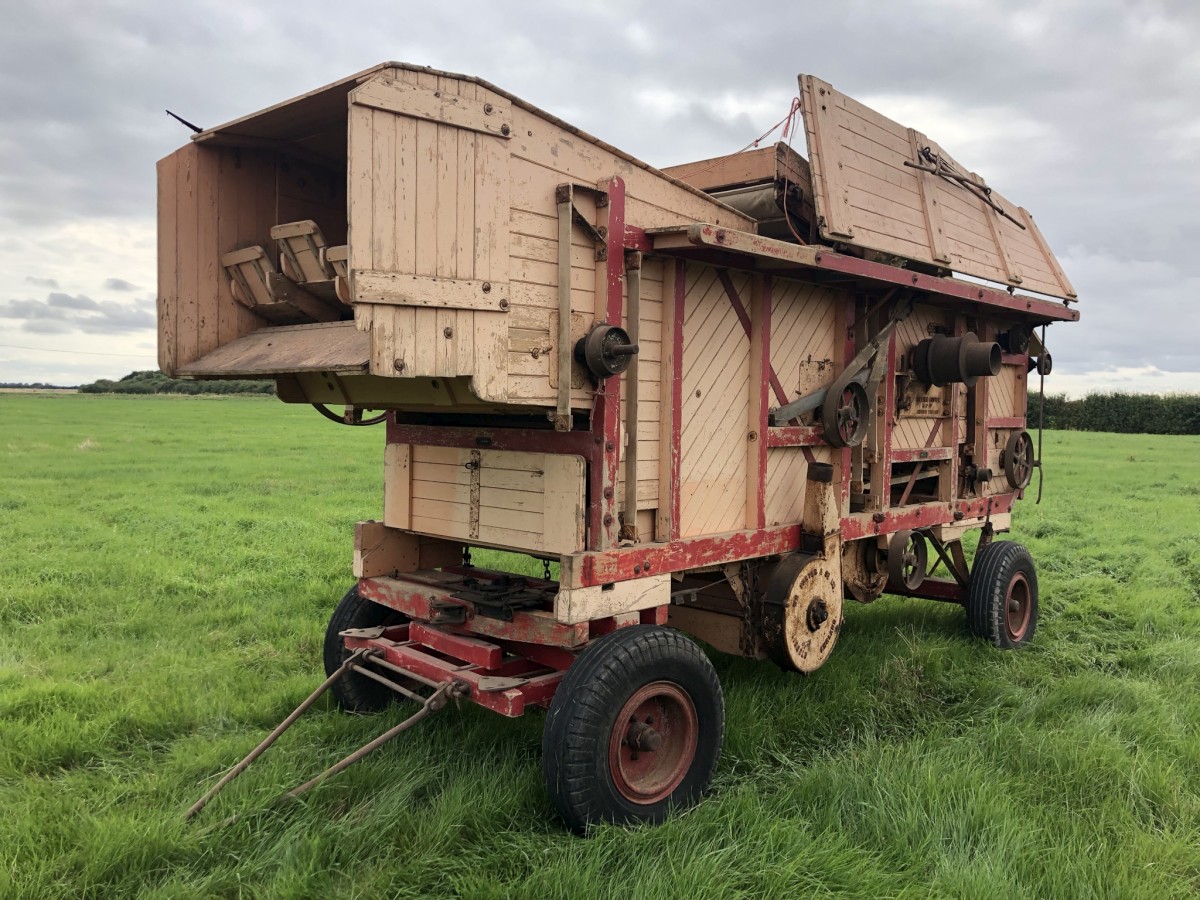 Foster Threshing Drum Printer-friendly versionFoster Threshing Drum Wooden framed Pneumatic wheels Self feed Very original tidy example