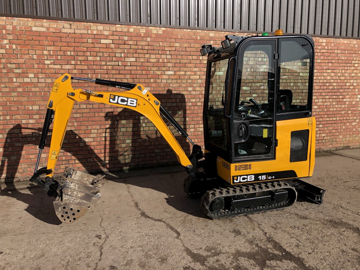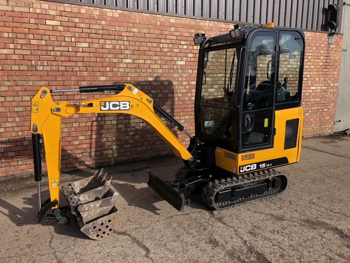 JCB 15C-1 Mini Digger Printer-friendly versionProduct number: 15C1HSOLDJCB 15C-1 Mini Digger Year 2018 ONLY 789 Hours Full cab with heater 3 Buckets Rubber tracks 90% 3 cylinder Perkins diesel engine Flashing light Immaculate condition
