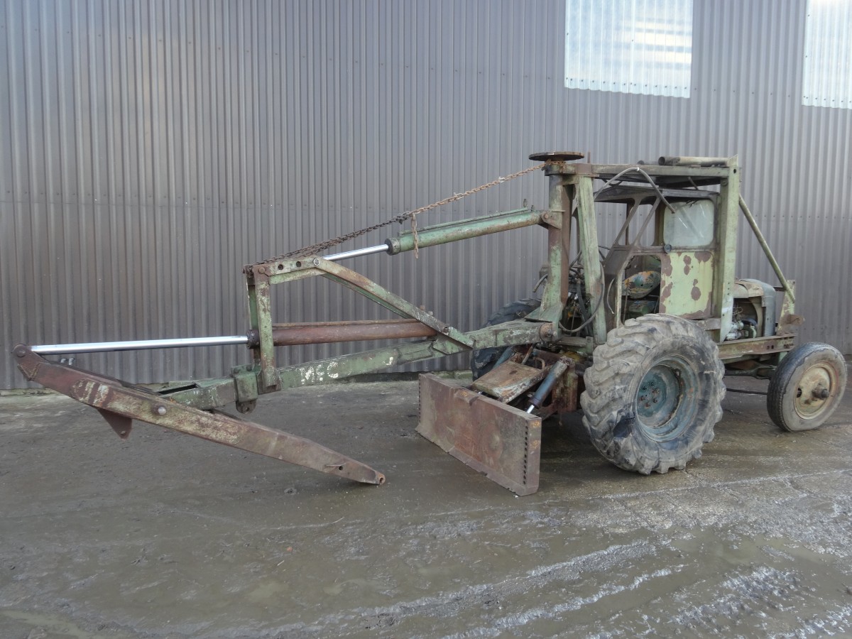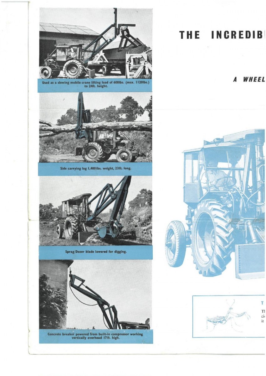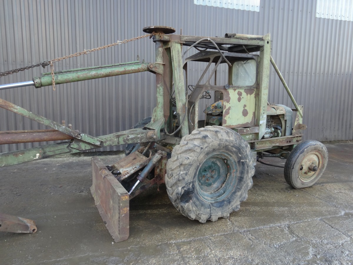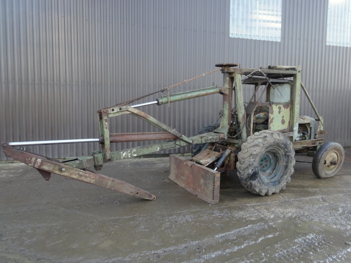 • Fitted with a hydraulic jib and hydraulically operated bulldozer blade for back filling trenches. Other attachments were available, forklift, crane jib, winch, high lift operator platform and an air compressor to drive tools.