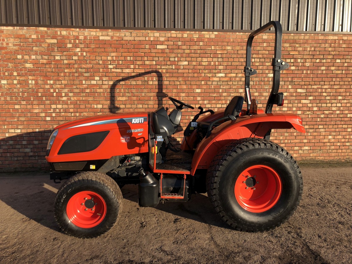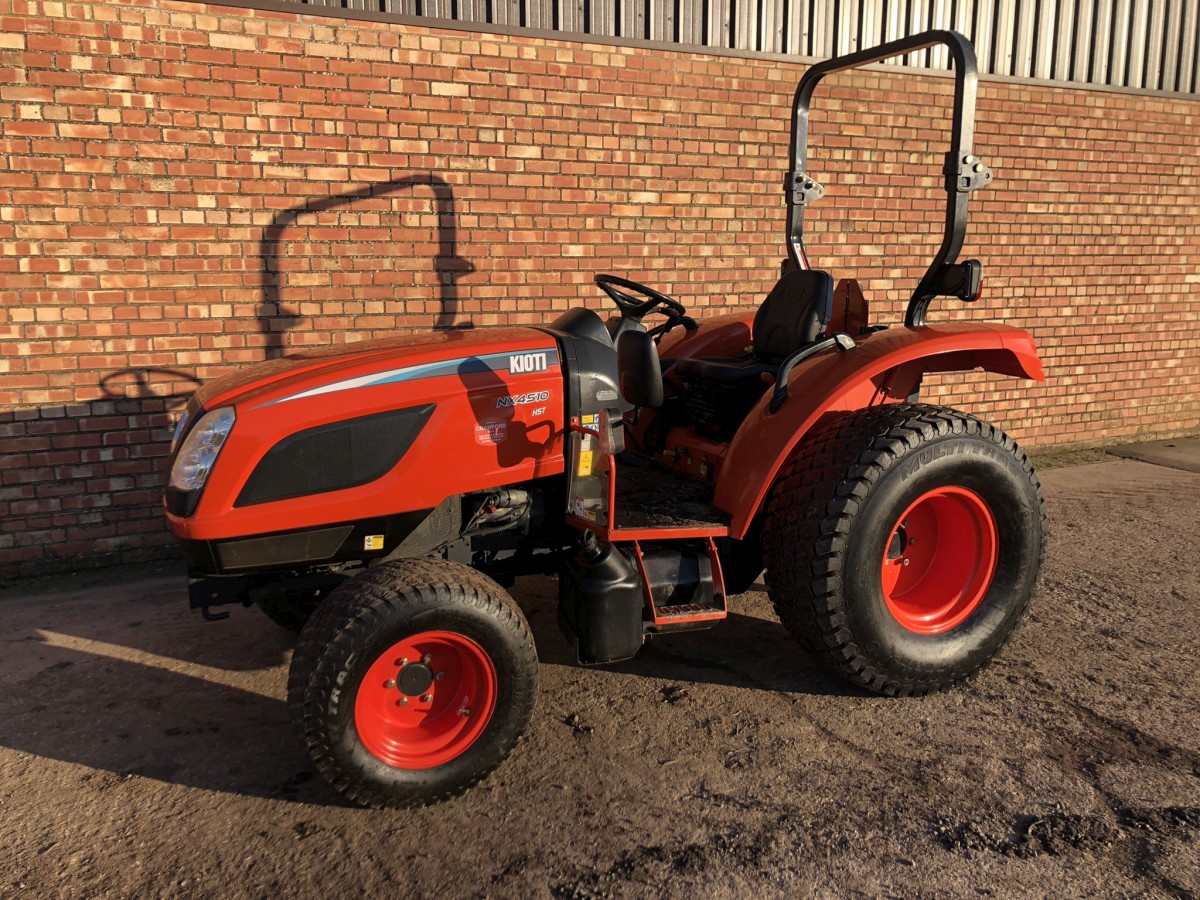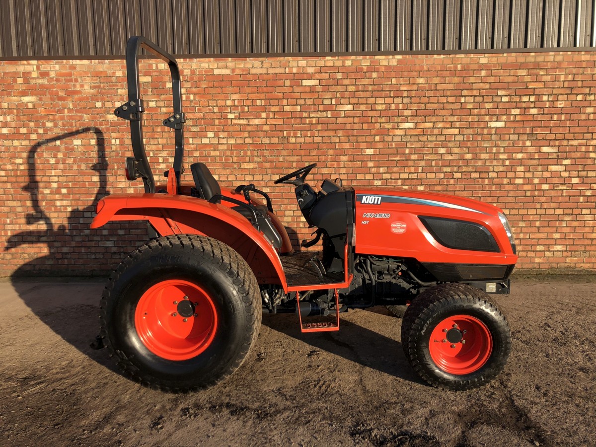 Kioti NX4510 Printer-friendly versionProduct number: 11001874SOLDKioti NX4510 Year 2014 1980 Hours 4 cylinder engine 45Hp Hydrostatic drive Turf tyres Extra rear hydraulic services with joystick control Lift arm hook ends Very tidy tractor