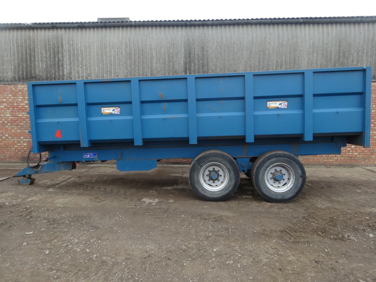 Warwick 14 Ton trailer Printer-friendly versionWarwick 14ton Trailer 14 ton capacity Super single tyres Grain chute Leaf spring suspesnion Sprung front drawbar LED rear lights Only used for grain Very tidy trailer